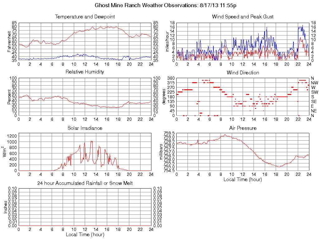 Temperature (F) 66.7 52.7 @ 01:25 80.1 @ 16:10 67.8
