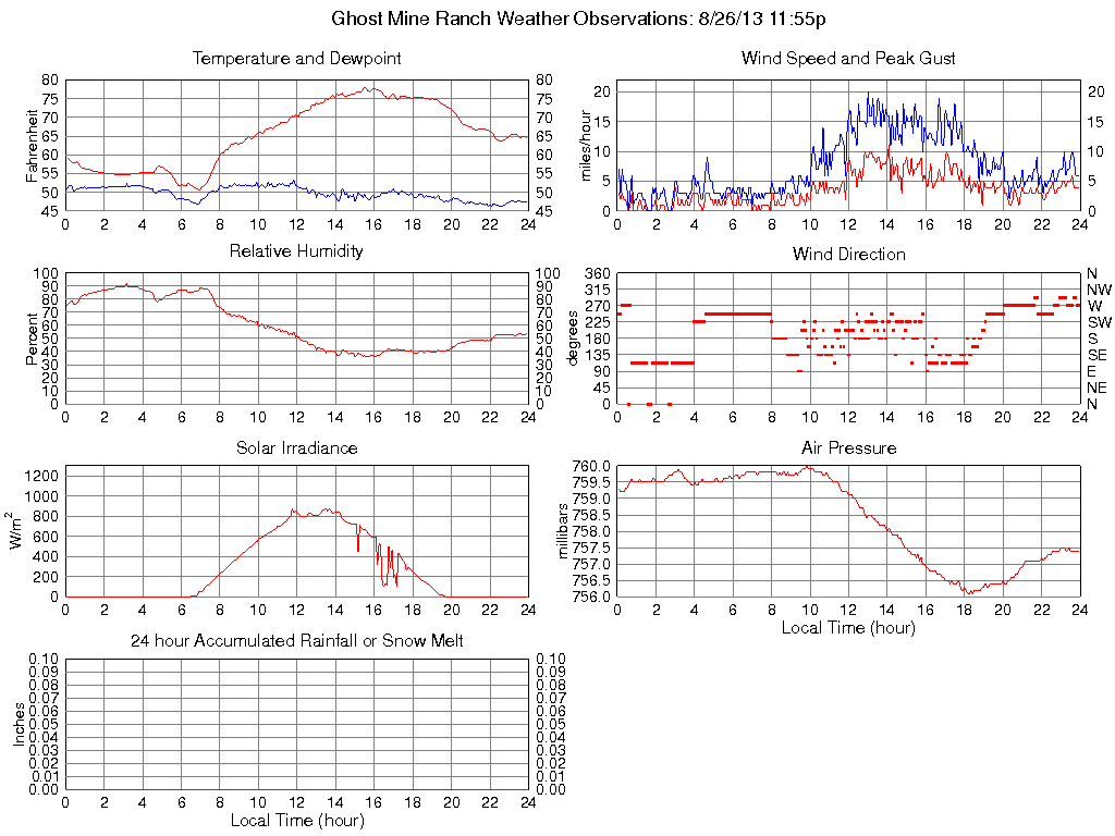 Temperature (F) 64.6 50.6 @ 06:55 78.0 @ 15:30 65.4