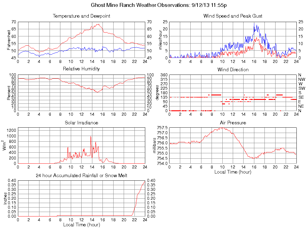 Temperature (F) 53.8 48.8 @ 04:05 68.6 @ 15:15 57.1