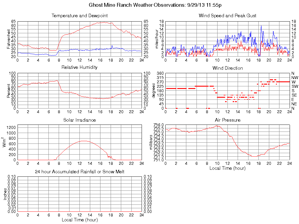 Temperature (F) 42.3 27.6 @ 07:20 63.8 @ 16:40 46.9
