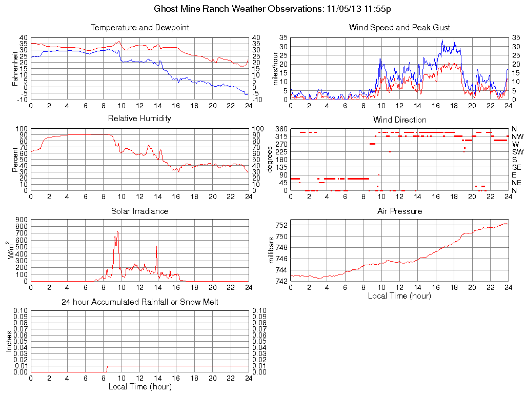 Dewpoint (F) -5.3 -6.3 @ 23:45 30.9 @ 08:30 17.0