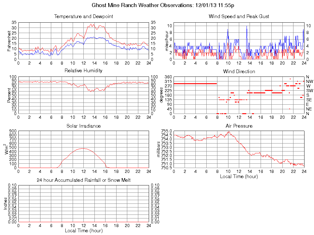 Temperature (F) 12.8 6.8 @ 05:45 33.6 @ 13:20 16.7