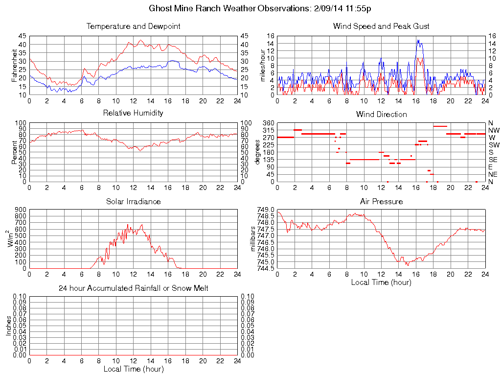 Temperature (F) 24.0 15.7 @ 04:50 42.8 @ 12:50 29.5