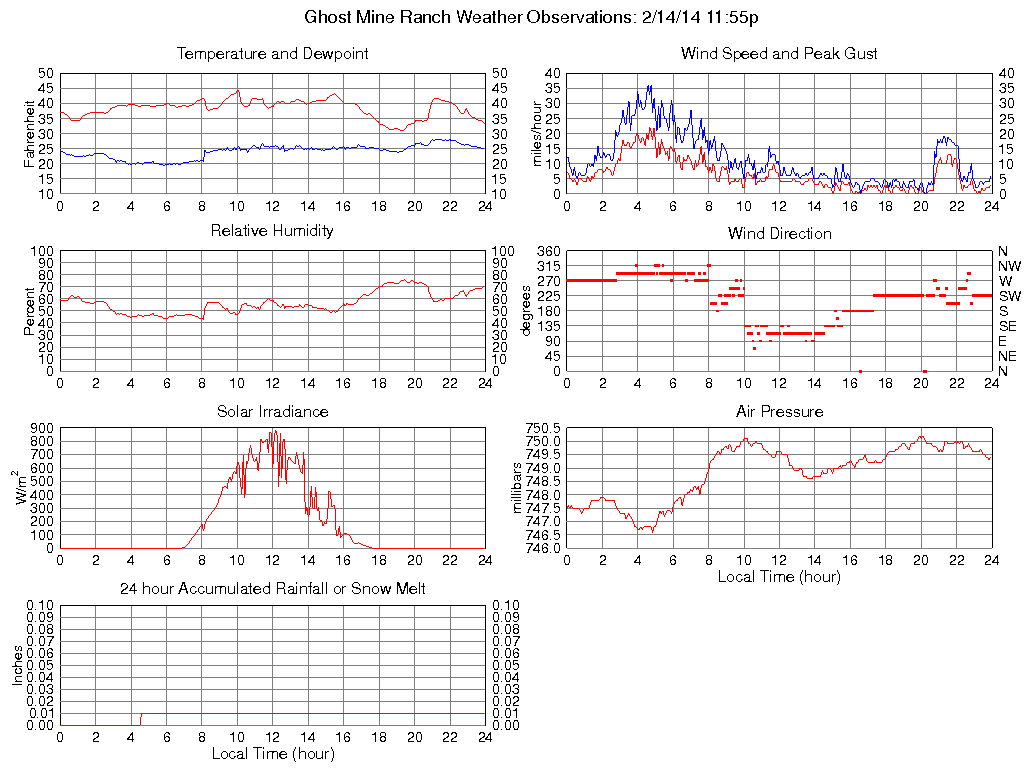 Temperature (F) 33.4 31.0 @ 19:15 44.5 @ 10:00 38.4