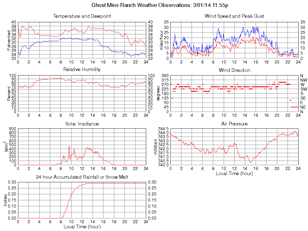 Temperature (F) 28.3 28.3 @ 21:15 38.1 @ 00:50 34.5