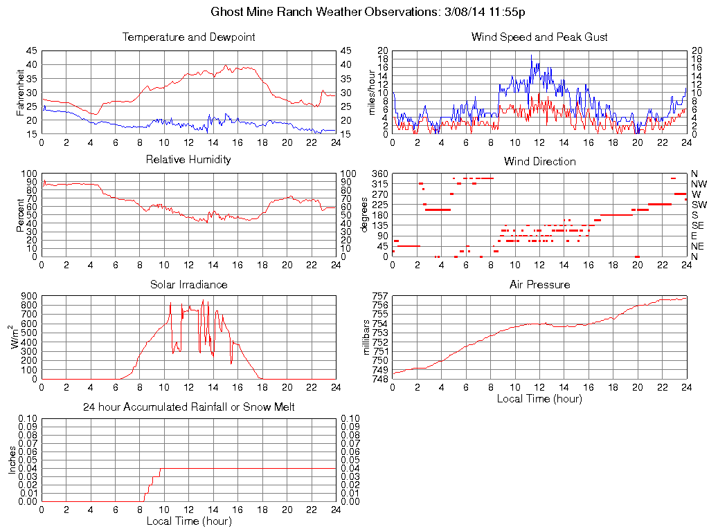 Temperature (F) 28.7 22.0 @ 04:25 40.0 @ 15:00 30.4