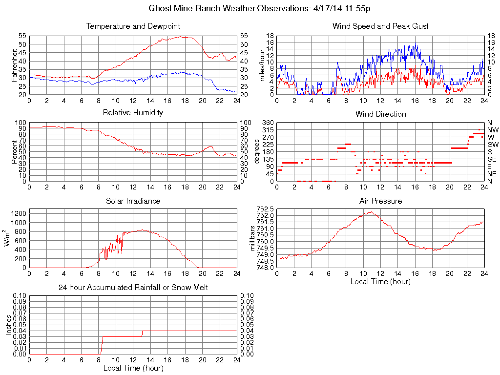 Temperature (F) 41.3 29.7 @ 07:15 54.7 @ 17:25 40.5