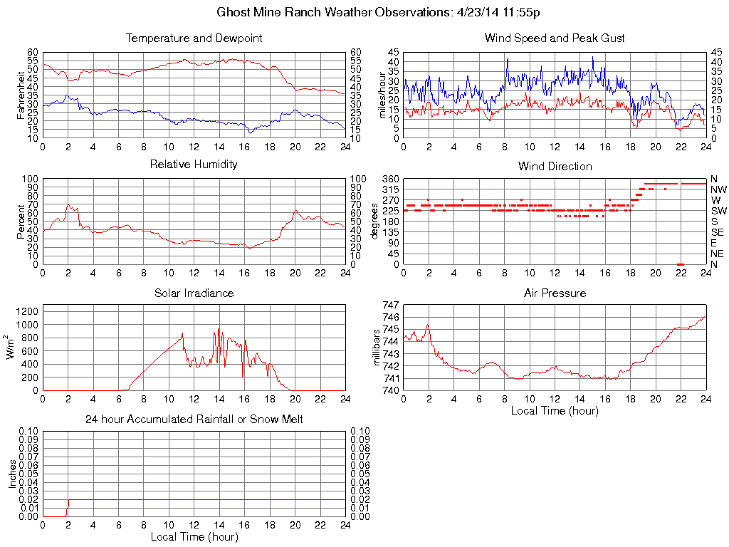 Dewpoint (F) 15.5 12.8 @ 16:30 35.0 @ 01:50 22.9