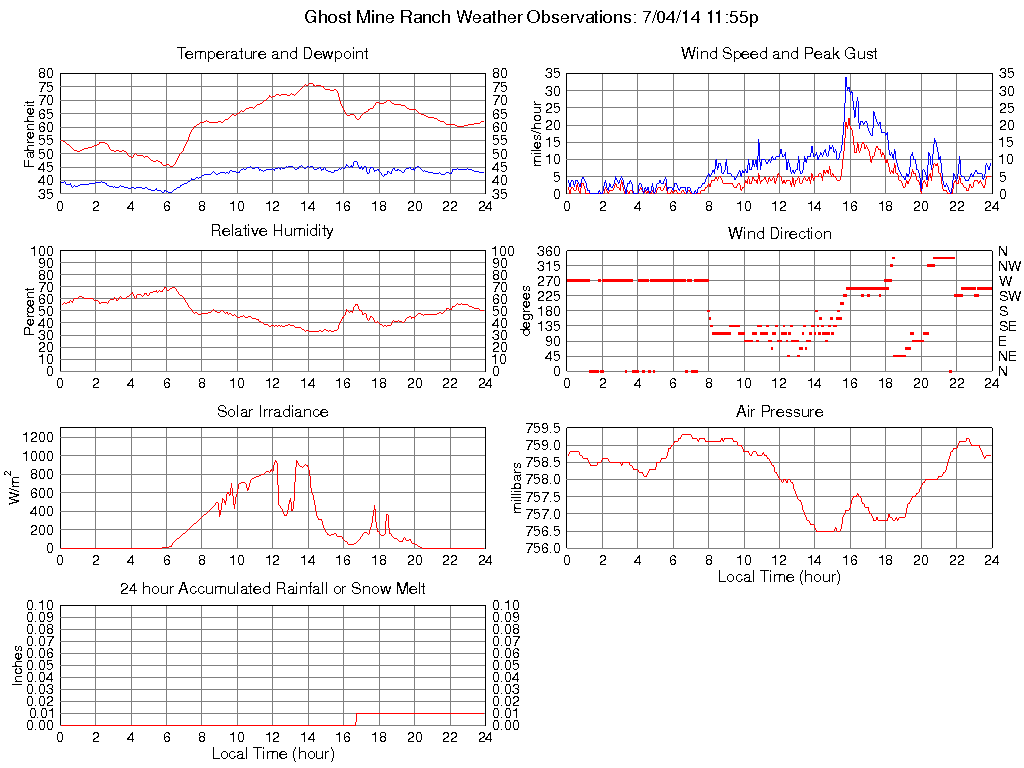Temperature (F) 62.1 45.3 @ 06:15 76.4 @ 14:10 61.8