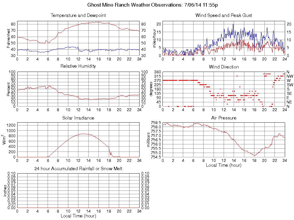 Temperature (F) 68.4 49.5 @ 05:15 83.8 @ 15:25 69.4