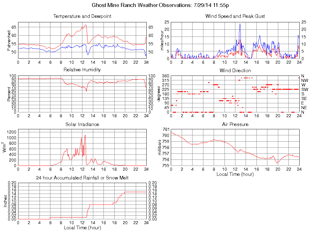 Temperature (F) 58.9 51.9 @ 05:20 66.4 @ 12:35 56.9