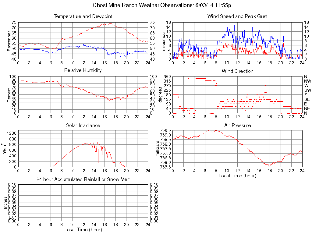 Temperature (F) 56.8 49.3 @ 05:50 74.1 @ 17:10 61.6