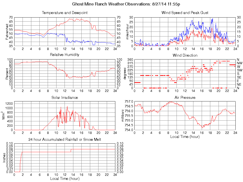 Temperature (F) 48.1 46.8 @ 23:25 68.7 @ 13:10 57.1