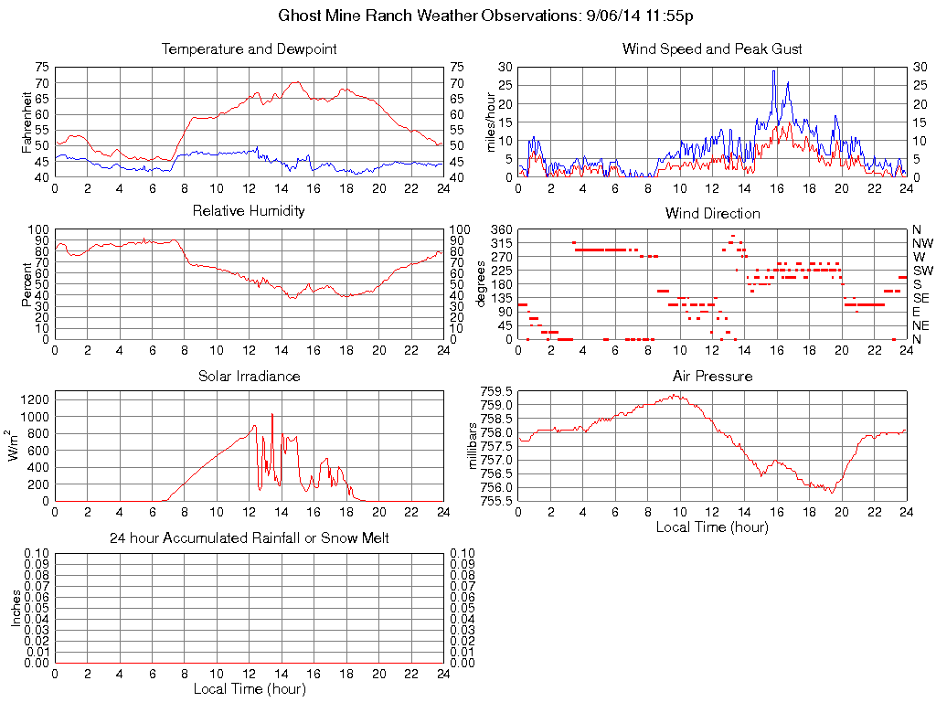 Temperature (F) 50.7 45.2 @ 05:45 70.3 @ 15:00 57.5
