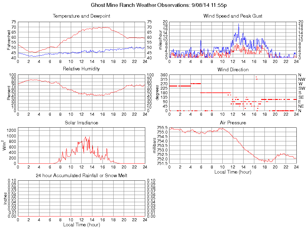 Temperature (F) 59.0 45.3 @ 03:20 70.1 @ 16:50 58.7