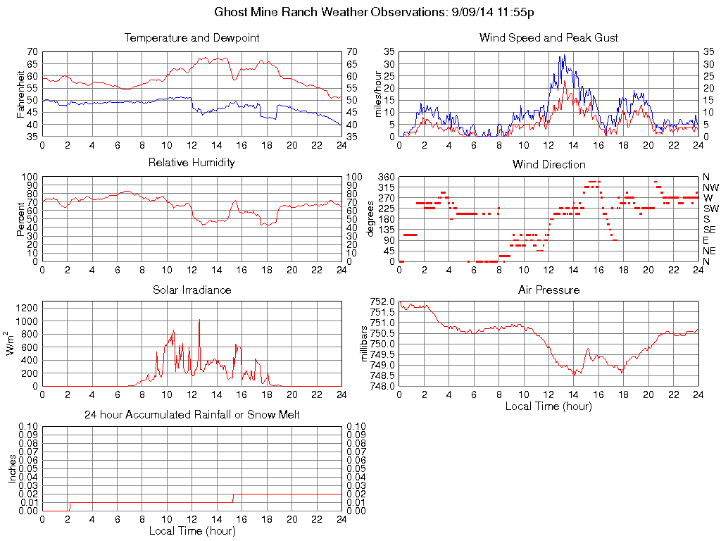 Temperature (F) 51.5 50.9 @ 23:10 67.8 @ 13:05 59.5