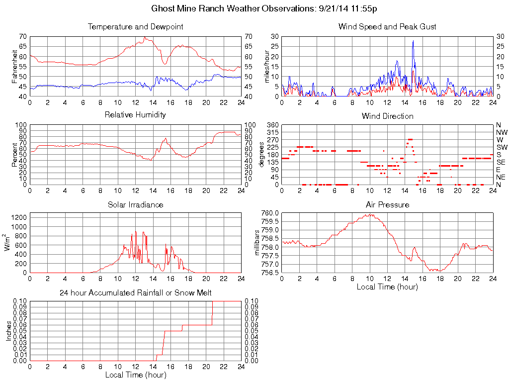 Temperature (F) 54.4 52.8 @ 23:05 69.8 @ 13:00 59.6