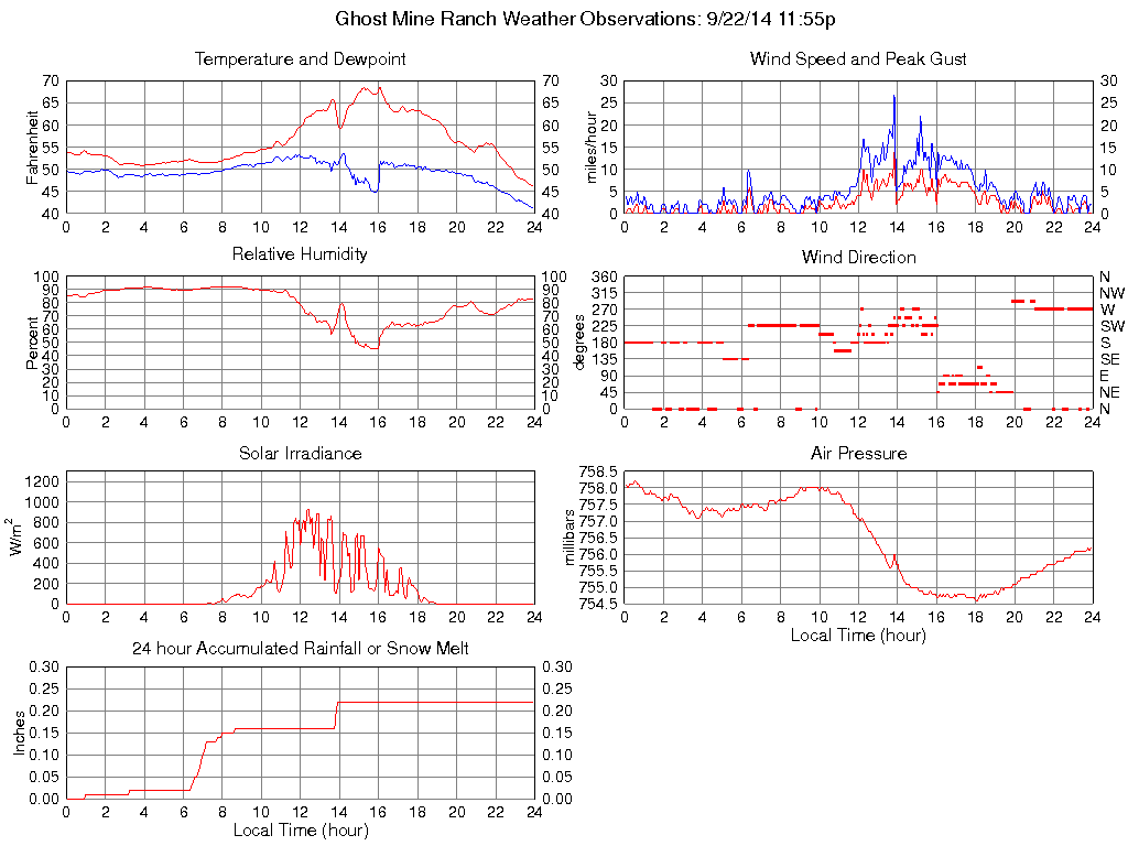 Temperature (F) 46.3 46.3 @ 23:50 68.6 @ 16:05 56.3