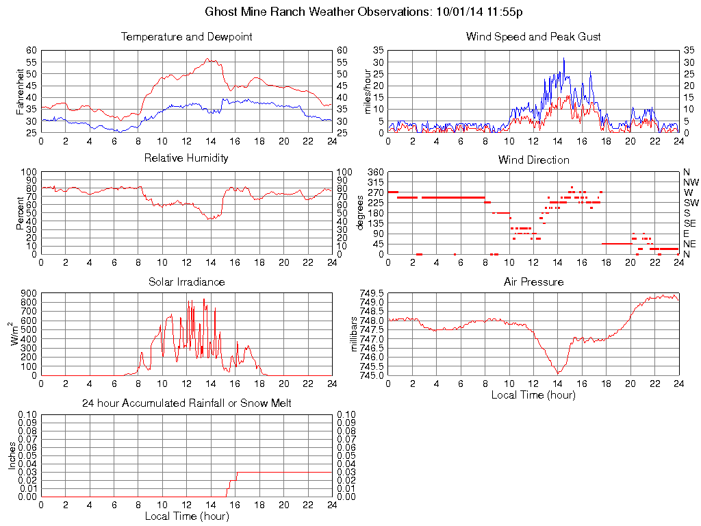 Temperature (F) 36.9 30.1 @ 06:35 56.6 @ 13:40 42.1