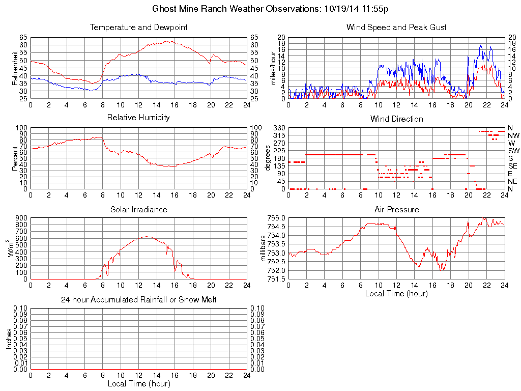 Temperature (F) 46.6 34.8 @ 06:50 62.5 @ 15:00 50.0
