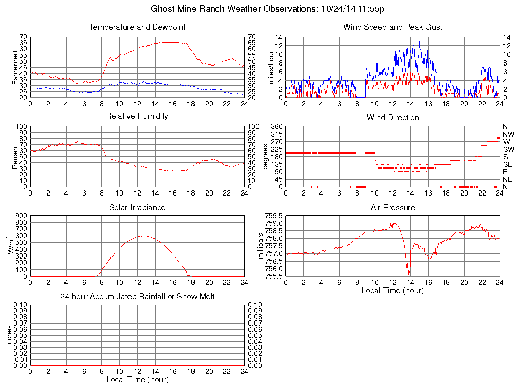 Temperature (F) 46.8 31.8 @ 05:10 65.7 @ 15:45 49.4