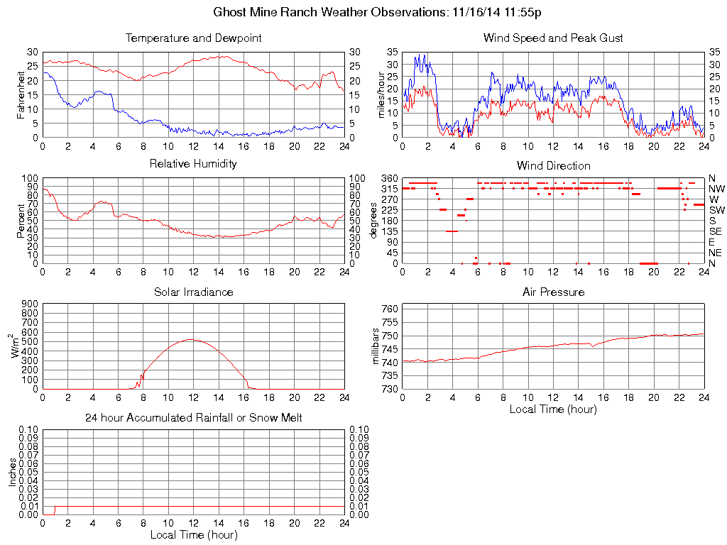 Temperature (F) 16.1 16.1 @ 23:55 28.5 @ 13:50 23.6