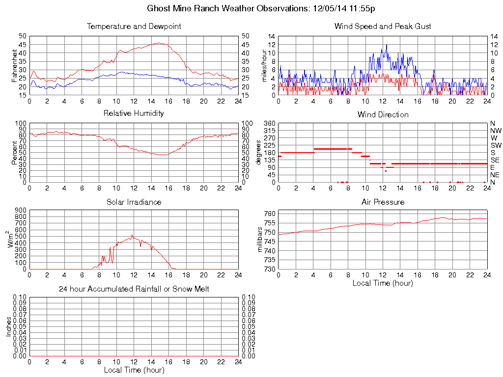 Temperature (F) 24.9 23.0 @ 02:50 45.9 @ 14:50 32.8