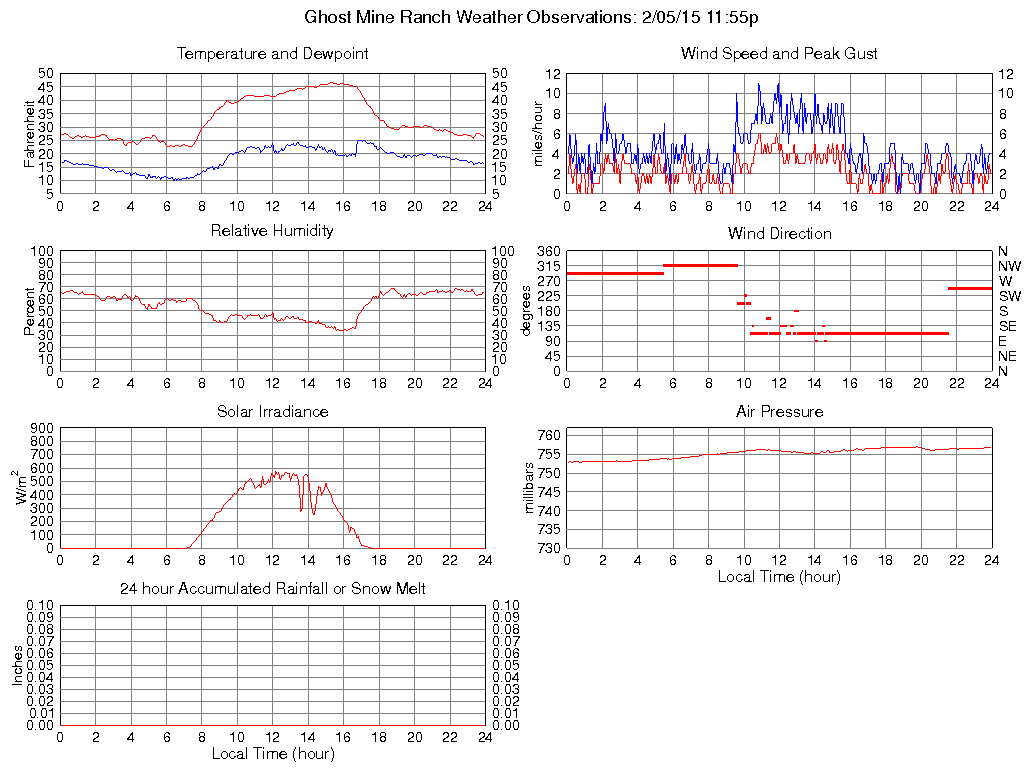 Temperature (F) 26.5 22.6 @ 06:25 46.6 @ 15:15 33.0