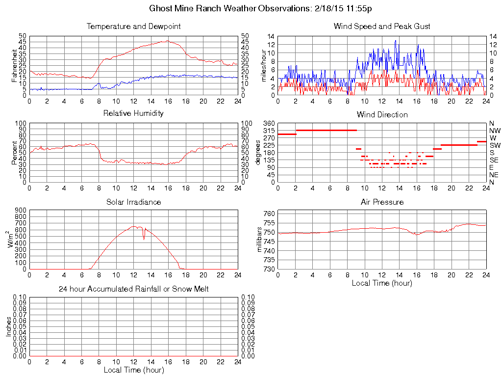 Temperature (F) 26.6 14.3 @ 07:00 46.2 @ 15:50 29.1