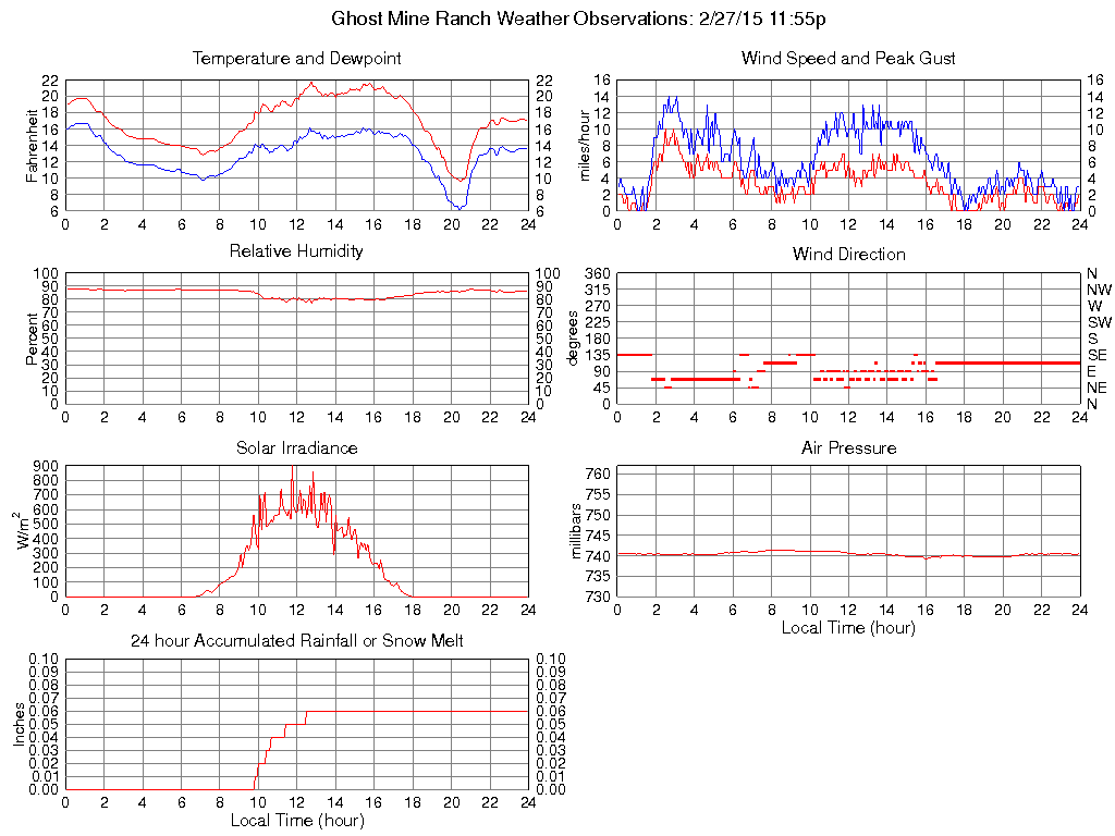 Dewpoint (F) 13.6 6.1 @ 20:25 16.7 @ 00:35 13.0