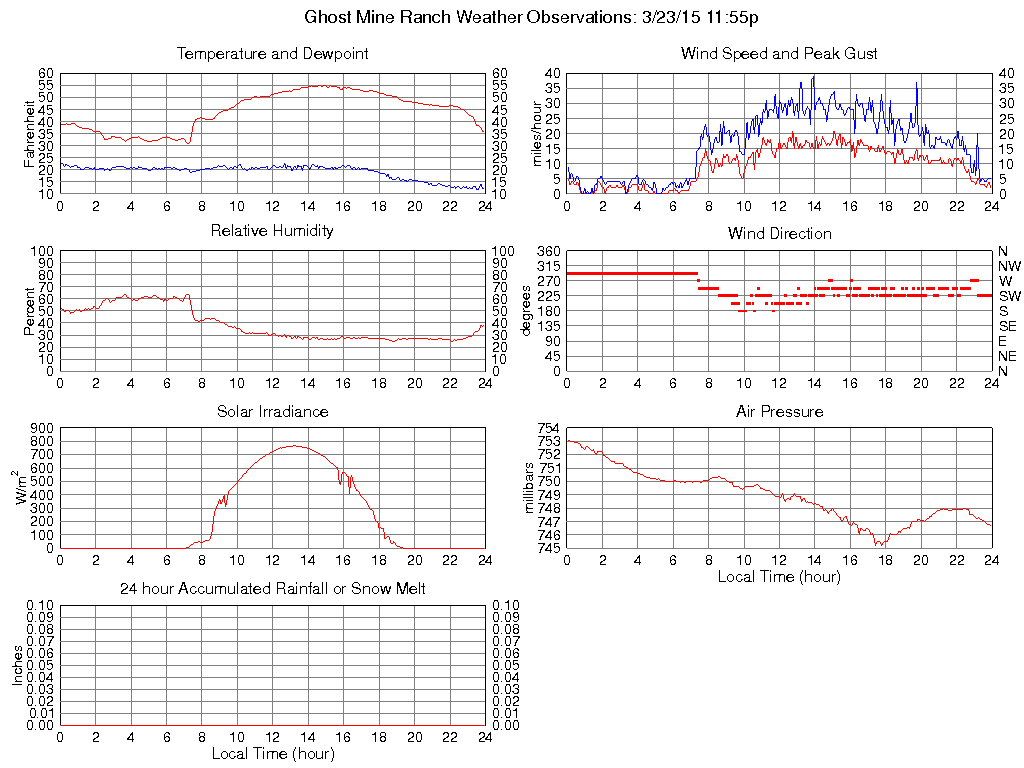 Temperature (F) 35.6 30.9 @ 07:15 55.1 @ 14:55 44.4
