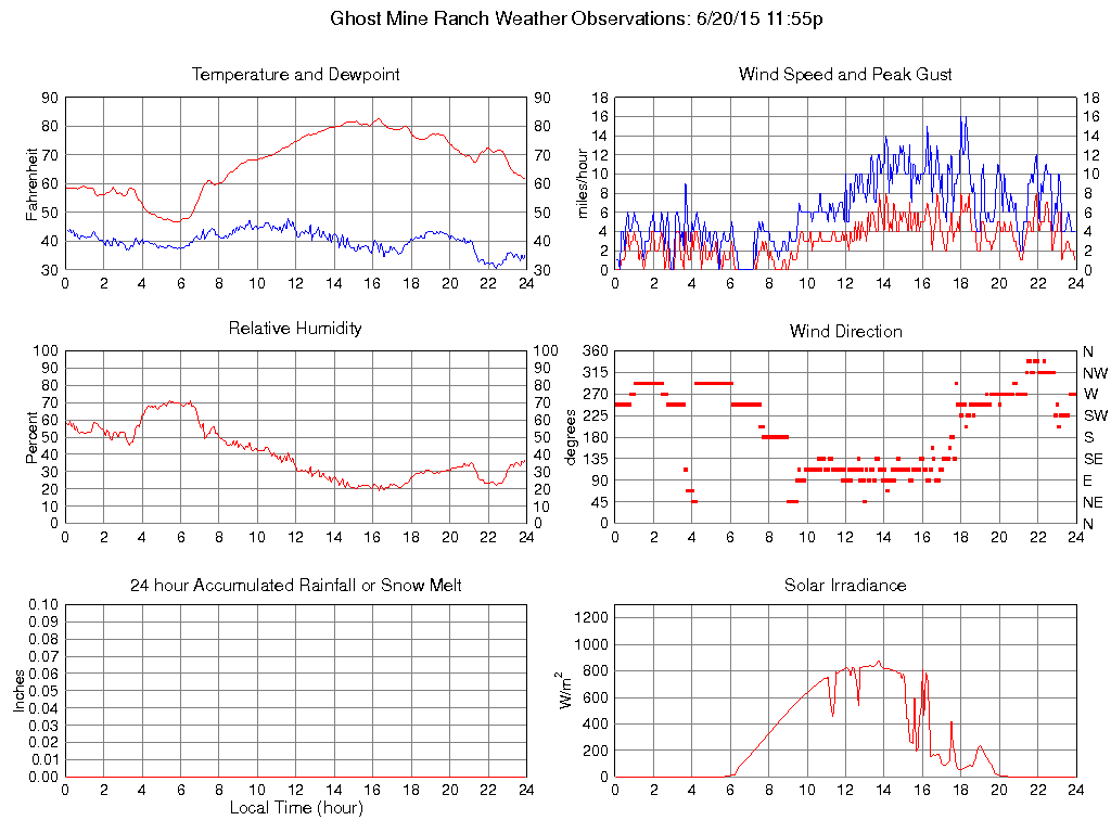 Temperature (F) 61.6 46.7 @ 05:40 82.7 @ 16:20 67.2