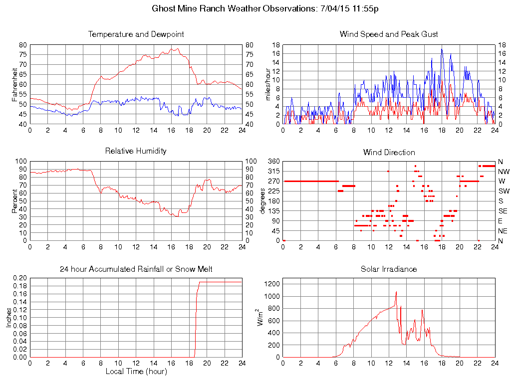 Temperature (F) 57.7 46.9 @ 04:45 78.0 @ 16:40 62.1