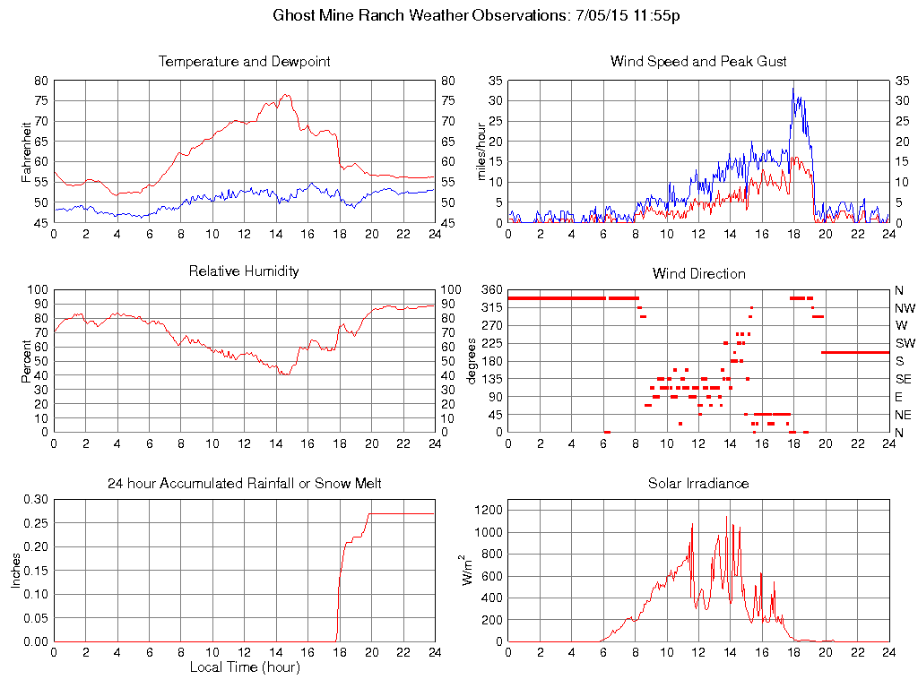 Temperature (F) 56.4 51.7 @ 03:55 76.6 @ 14:35 61.2