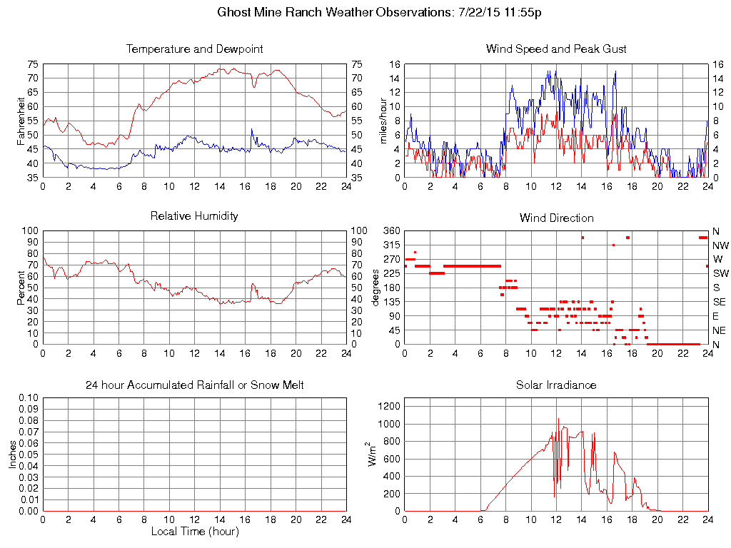 Temperature (F) 58.5 45.6 @ 05:00 73.6 @ 15:05 61.7