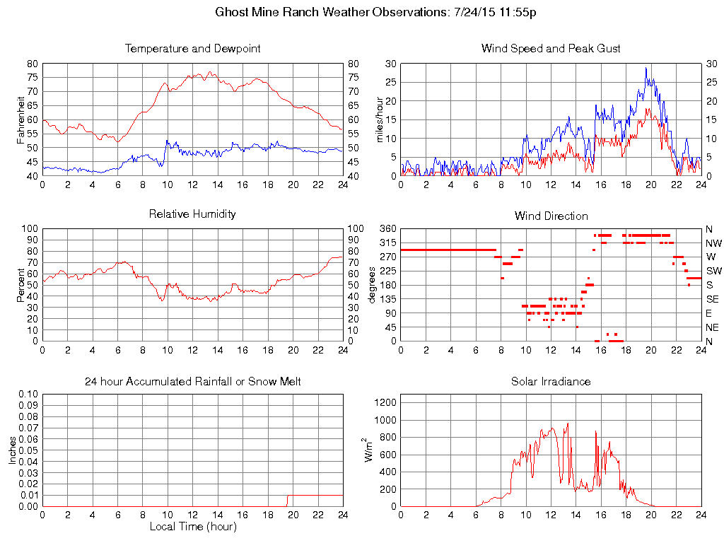 Temperature (F) 56.6 52.1 @ 05:55 77.1 @ 13:20 64.8