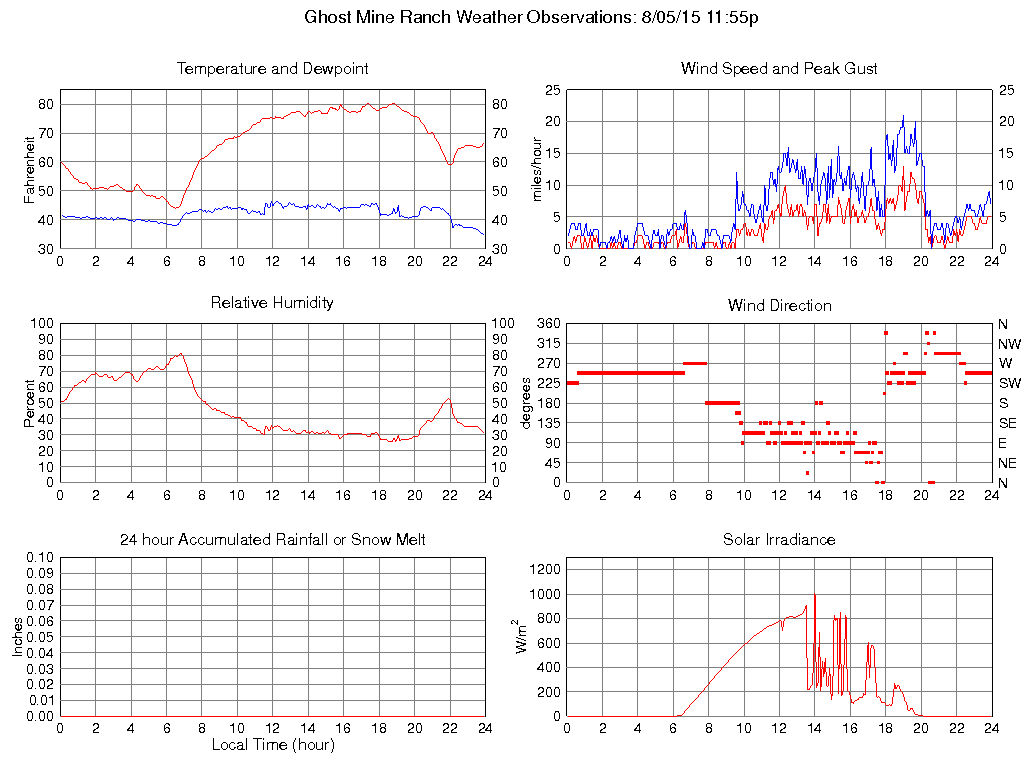 Temperature (F) 66.5 44.0 @ 06:30 80.3 @ 17:20 65.6