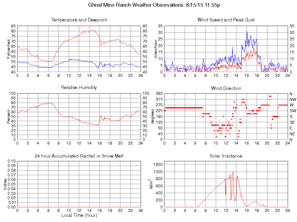 Temperature (F) 57.5 50.2 @ 06:00 80.9 @ 14:25 66.0