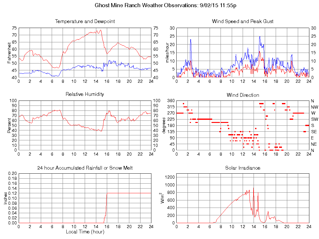 Temperature (F) 54.5 46.7 @ 06:30 73.6 @ 14:50 59.7