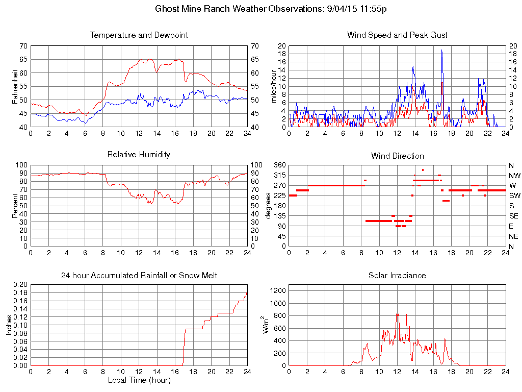 Temperature (F) 53.5 44.2 @ 06:05 65.2 @ 13:10 55.0