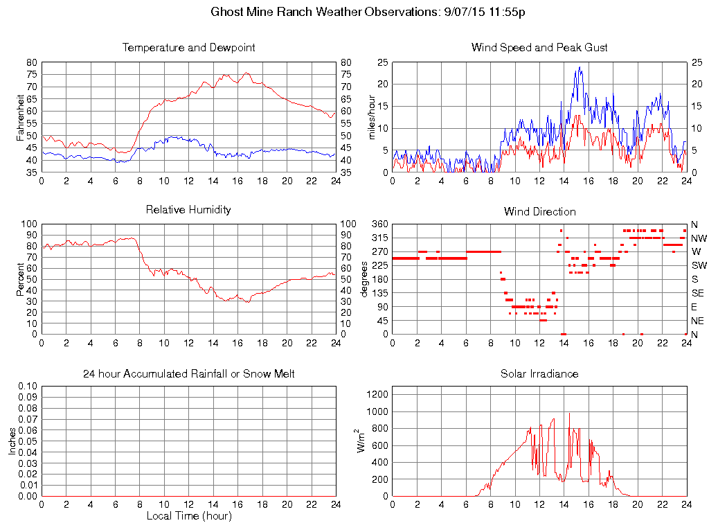 Temperature (F) 59.2 42.9 @ 06:50 75.7 @ 16:40 59.6