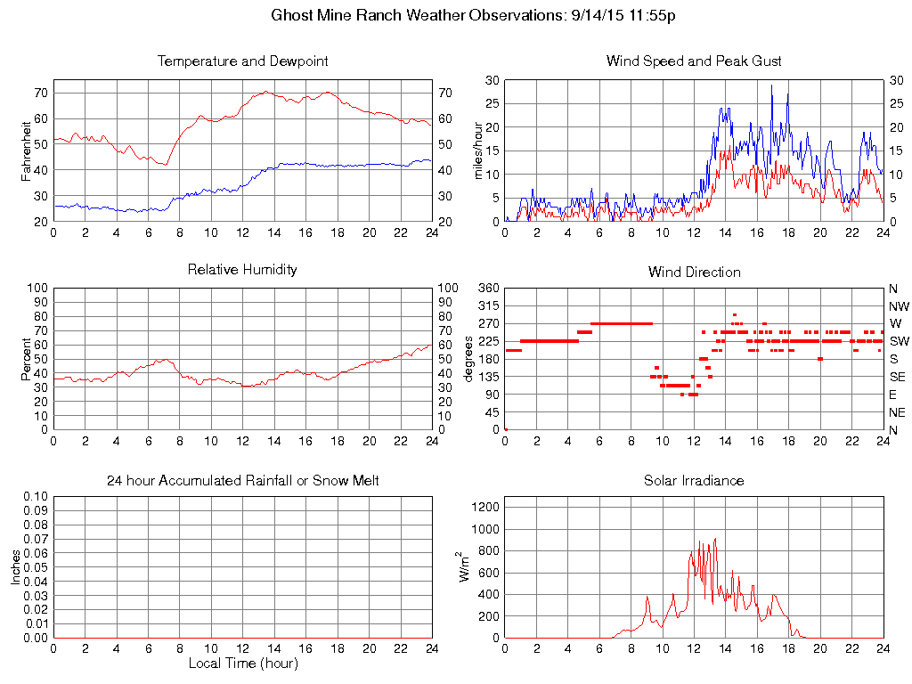 Temperature (F) 57.3 42.0 @ 07:05 70.7 @ 13:25 58.6