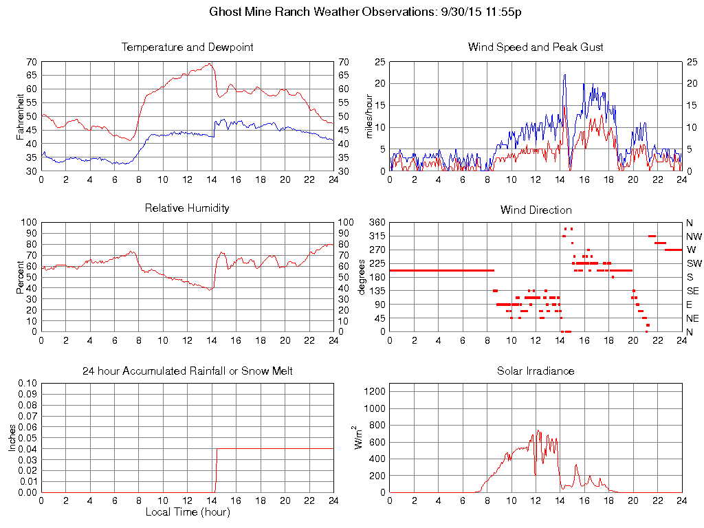 Temperature (F) 47.3 41.1 @ 07:15 69.3 @ 13:45 54.8
