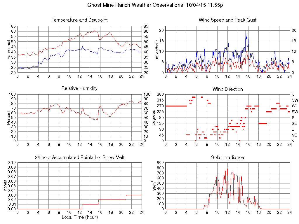 Temperature (F) 44.6 36.4 @ 02:25 61.3 @ 14:50 48.3