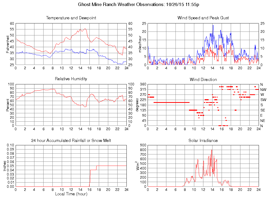 Temperature (F) 38.2 33.0 @ 23:05 55.5 @ 15:00 43.2