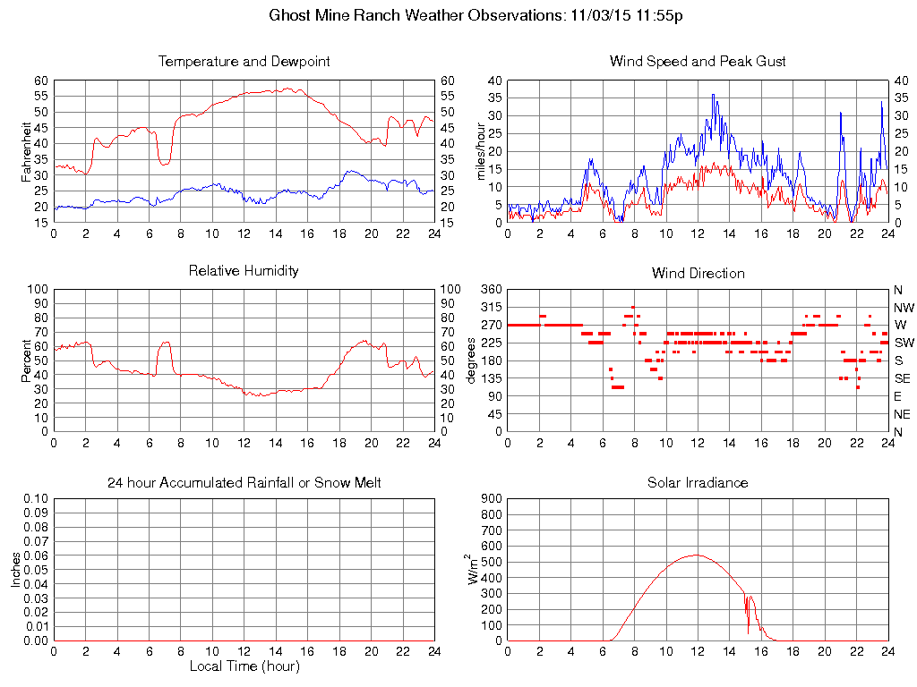 Temperature (F) 46.9 30.3 @ 01:55 57.4 @ 14:40 46.3