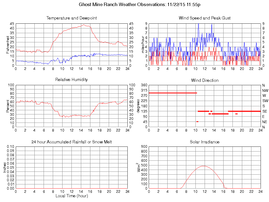 Temperature (F) 20.8 13.7 @ 03:25 43.8 @ 14:35 26.6