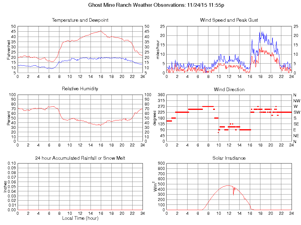 Temperature (F) 22.0 15.7 @ 06:35 45.6 @ 16:00 31.2