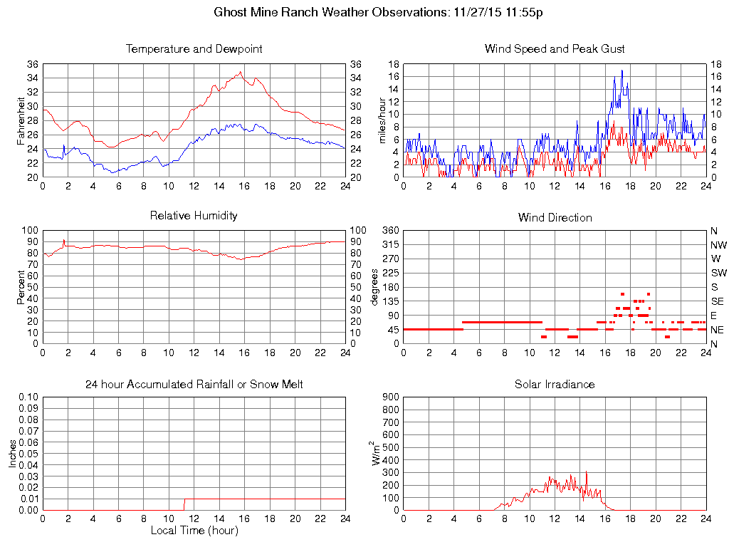 Temperature (F) 26.6 24.2 @ 05:15 34.9 @ 15:40 28.5