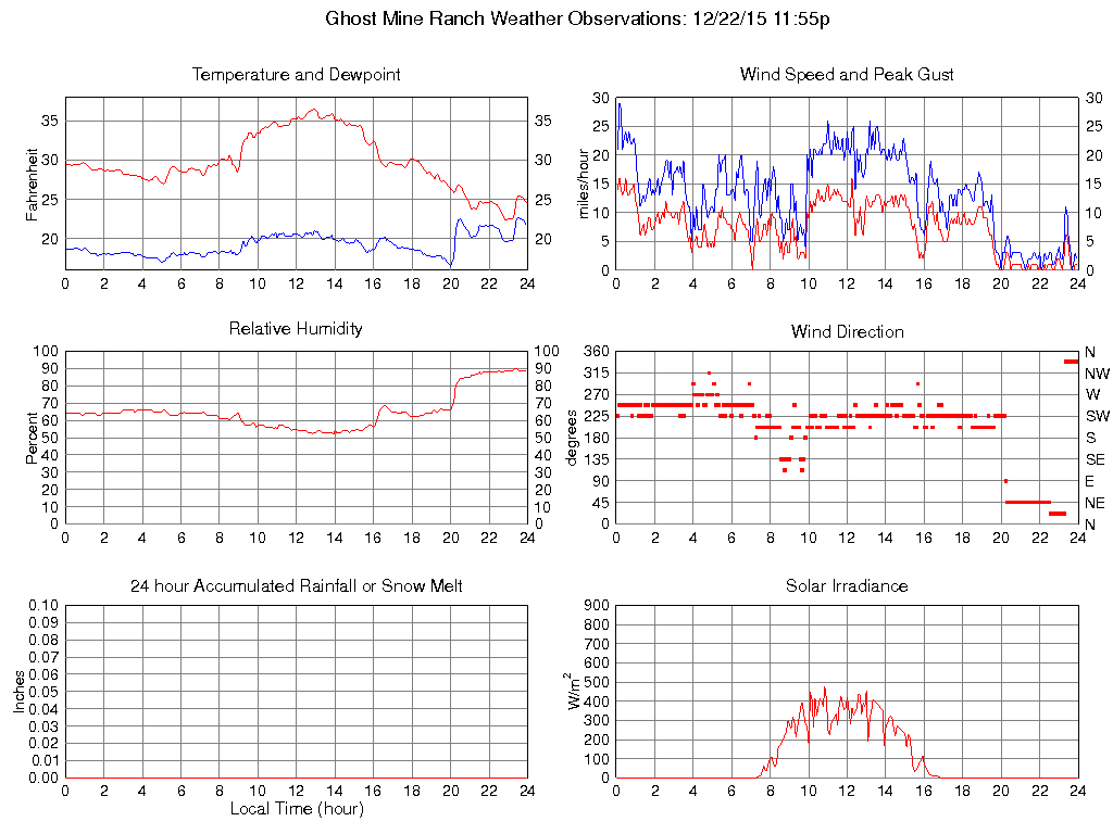 Temperature (F) 24.6 22.3 @ 22:55 36.5 @ 12:55 29.8